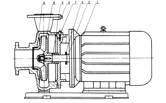 4、lSWB臥式管道油泵,供輸送汽油、煤油、柴油等用油類產品或易燃、易爆液體,被輸送介質溫度為一20~C~+120℃。